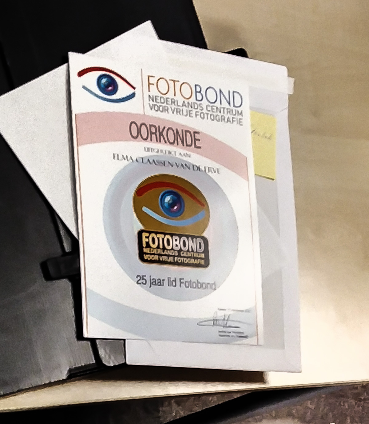 Met een praatje van Jan, vol sweet memories en gelardeerd met enkele portretfoto's van Elma van weleer, een oorkonde en een speldje van de Fotobond werd Elma gisteren in de schijnwerpers gezet.